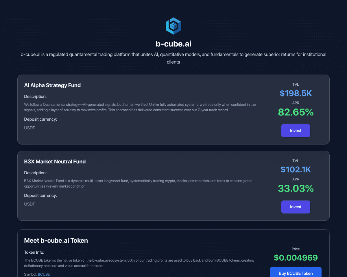 - Non-Custodial Approach — Maintain full control of your funds as b-cube.ai does not hold user assets; they remain on connected exchanges.