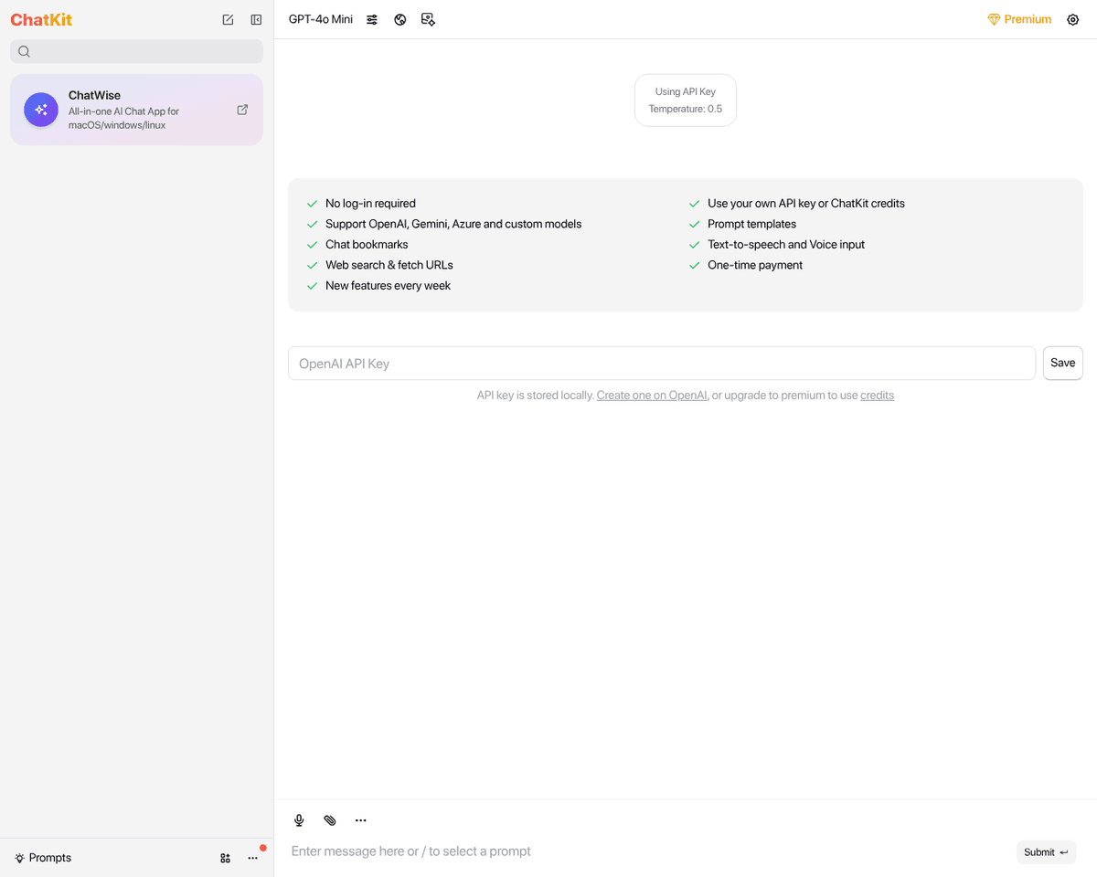 This platform enhances ChatGPT's capabilities by introducing real-time features, such as the ability to incorporate URLs into chat context, perform comprehensive text searches within chat history, and utilize voice input through the Whisper API. Users can access ChatKit either by using their persona