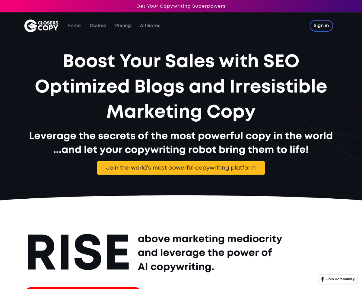 - Custom AI Models — ClosersCopy features specialized AI models like SalesAI, BlogAI, and StoryAI, tailored for different types of copywriting needs.