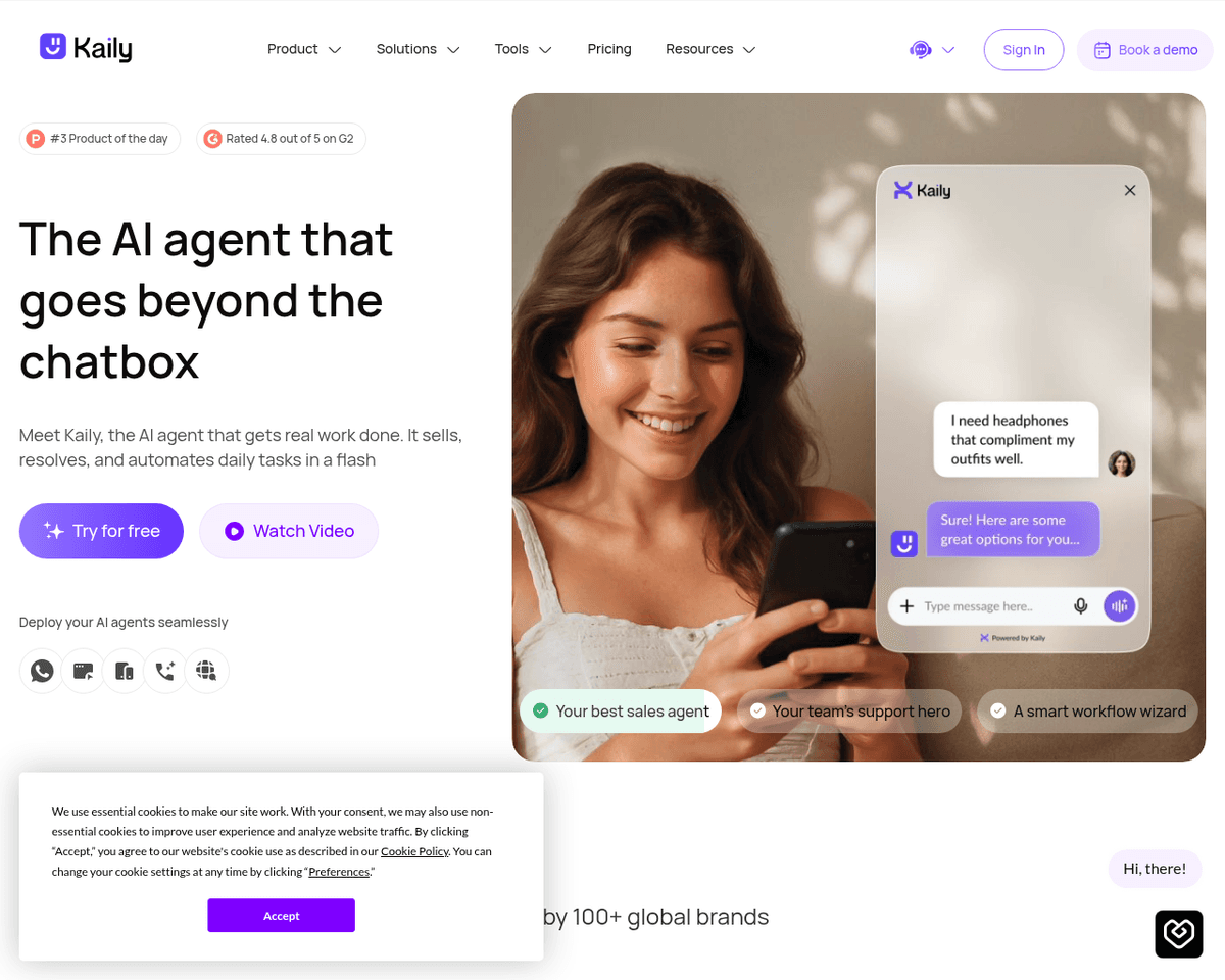 - Supports over 50 languages — Engage users globally with support for languages like English, Hindi, French, Spanish, and more.