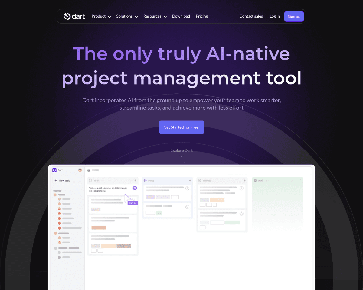 - AI Assistance — Dart employs AI to automatically create roadmaps and generate reports for changelog updates, standup meetings, and more.