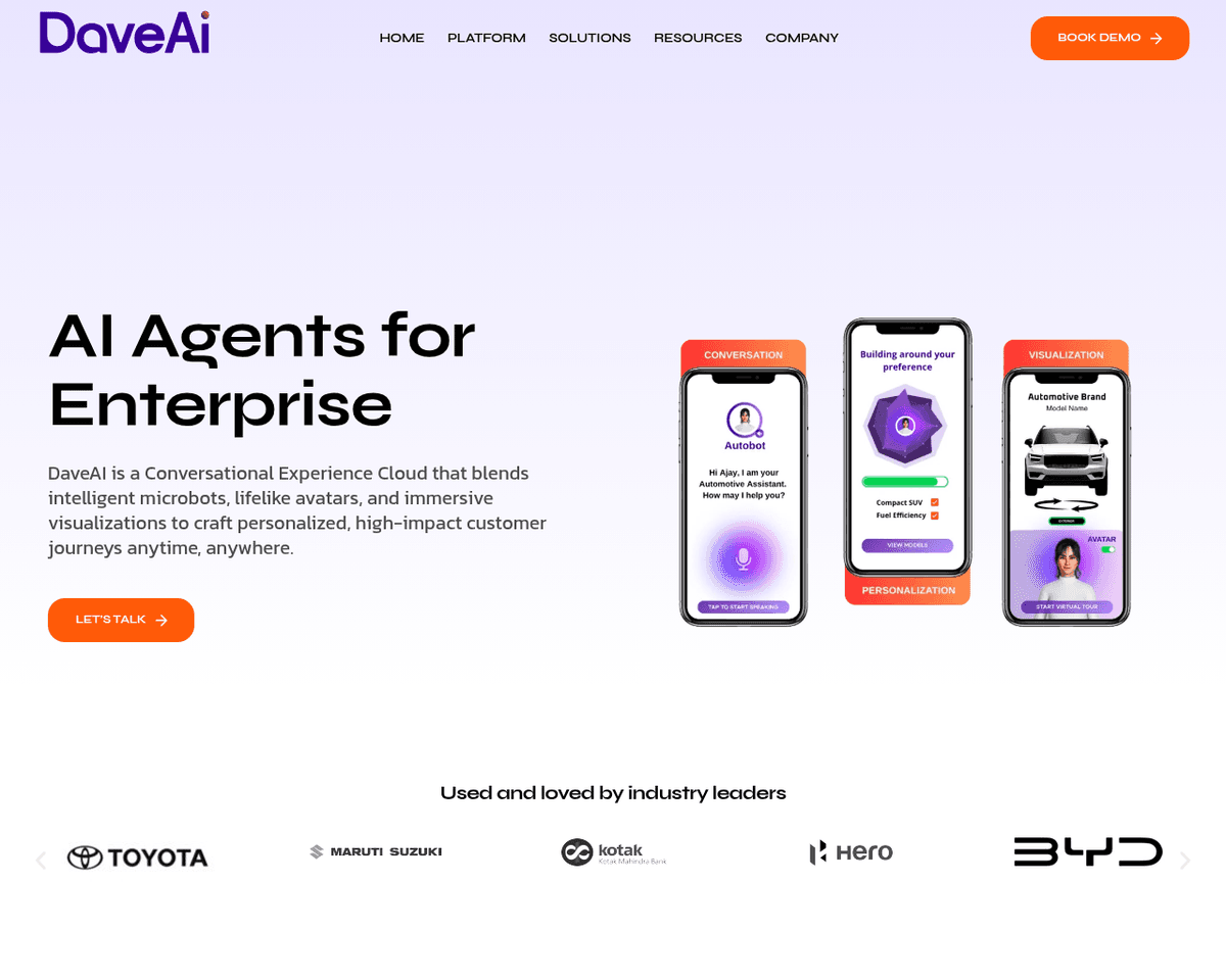 - Automobile Showcases — Automobile businesses can leverage DaveAI for virtual car showcases and detailed feature explanations, enhancing customer understanding and interest.