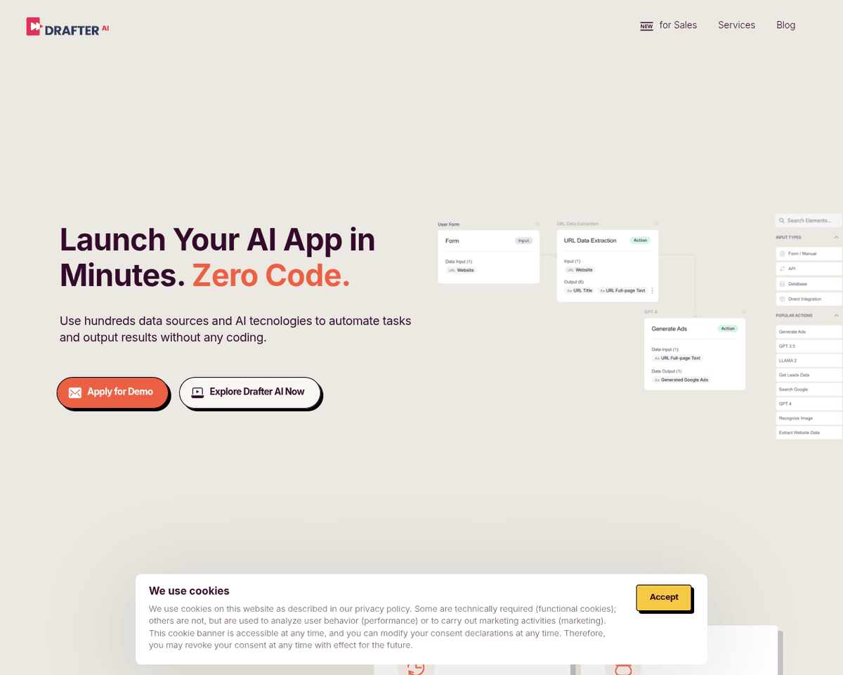 - Customizable AI Solutions — Drafter AI allows businesses to create tailored AI tools that meet specific organizational needs, enhancing overall efficiency.