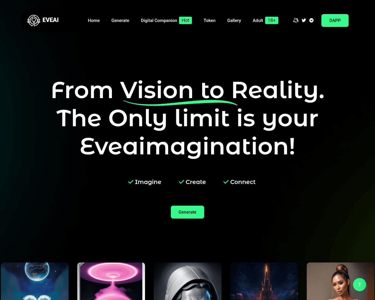 - Generative AI — EVEAI can bring your vision to life in images and videos, transforming your ideas into stunning visuals.