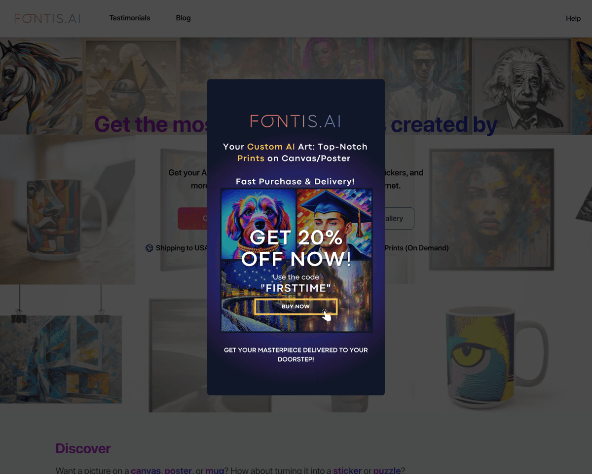 - Custom Wall Art — Transform your living space with unique art prints and canvas posters, generated by Fontis.AI. Perfect for home decor enthusiasts looking to add a personal touch to their walls.