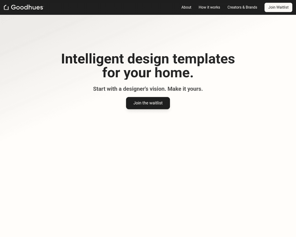 - AI-Powered Design Generation — Goodhues.ai utilizes advanced AI algorithms to create diverse design options tailored to your preferences.