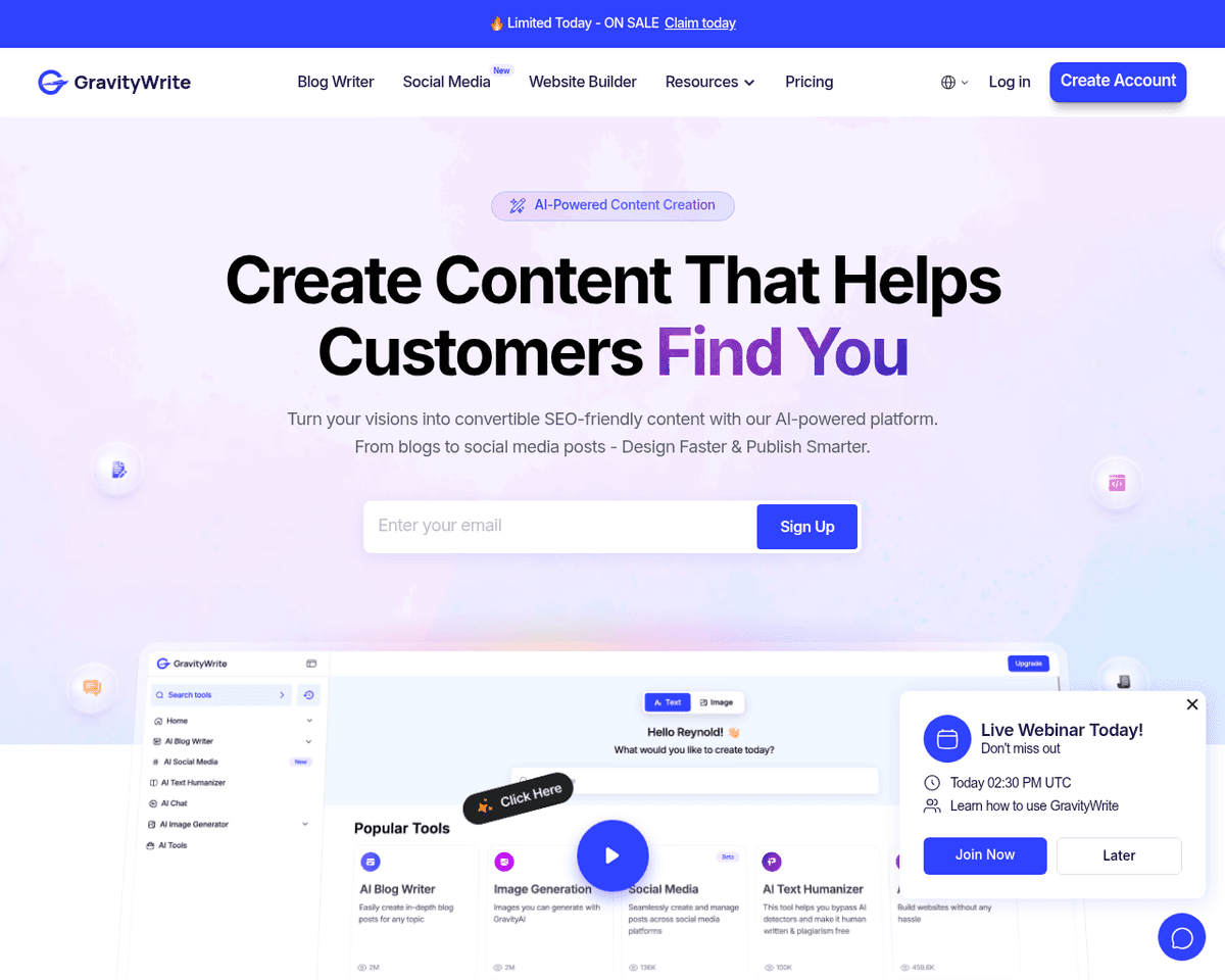 - Diverse Content Generation — Create a wide range of content types including blog posts, social media updates, YouTube scripts, and more with just a few clicks.
